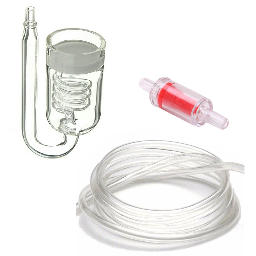 Kit Difusor Co2 Espiral em Vidro Com Contador Conta Bolhas Embutido + Mangueira + Válvula Anti Retorno + Ventosa Aquário