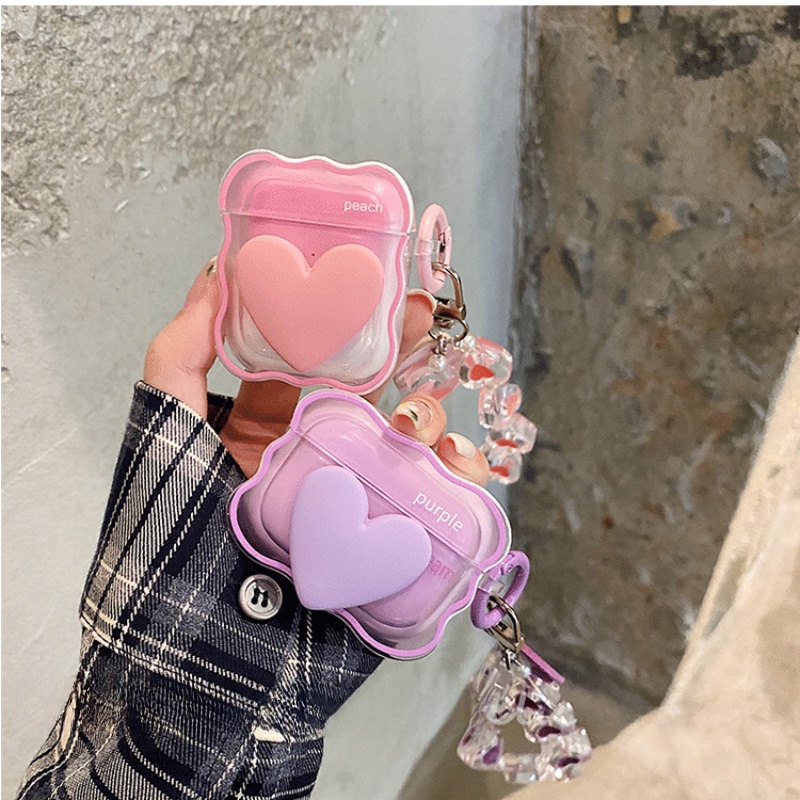 Moda Fofo Porta-Chaves Coração Onda Silicone Fone De Ouvido Para Airpods Apple 1 2 Pro 2nd 3 Bluetooth Capa Bolsa Sem Fio
