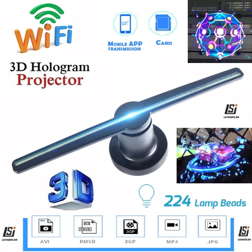 Projetor Holográfico 3D LED WiFi De Tela De Ventilador Holograma Reprodutor De Publicidade