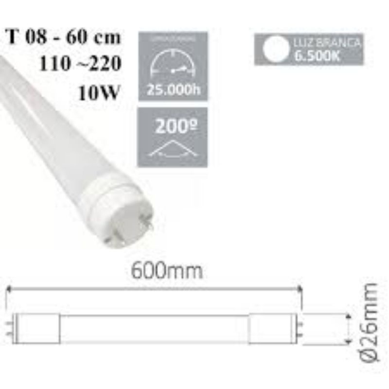 lâmpada tubular de LED ligação dos dois lados aprovação pelo Inmetro de 60 cm Branco frio 6500 k 60cnt 9w 900lumes