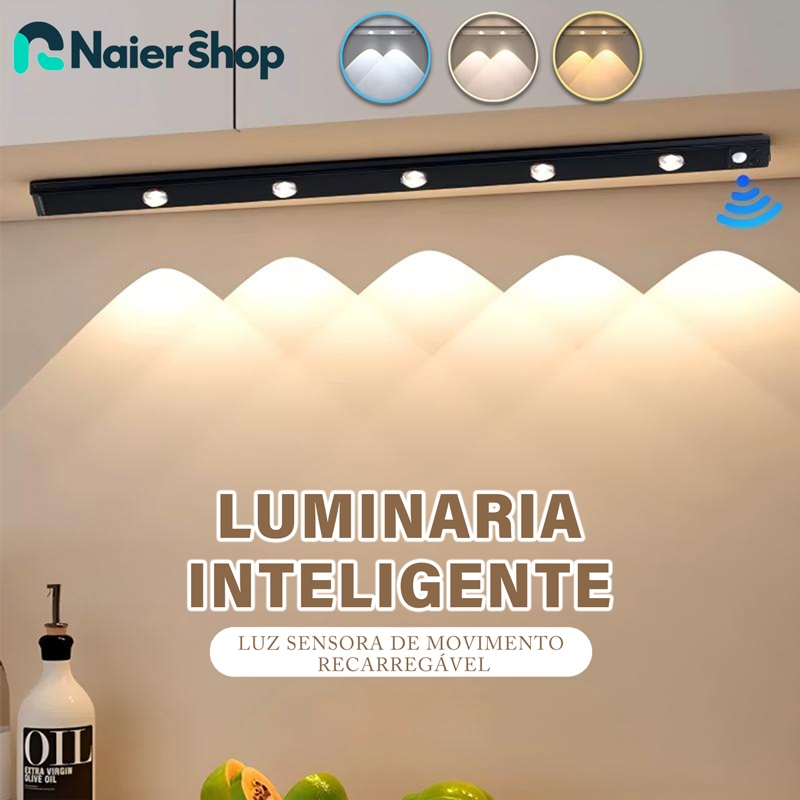 Lâmpada LED Ultra Fino Recarregável 3 Cores para Armários (20/40/60 cm) Com Sensor PIR Sem Fio e Usb