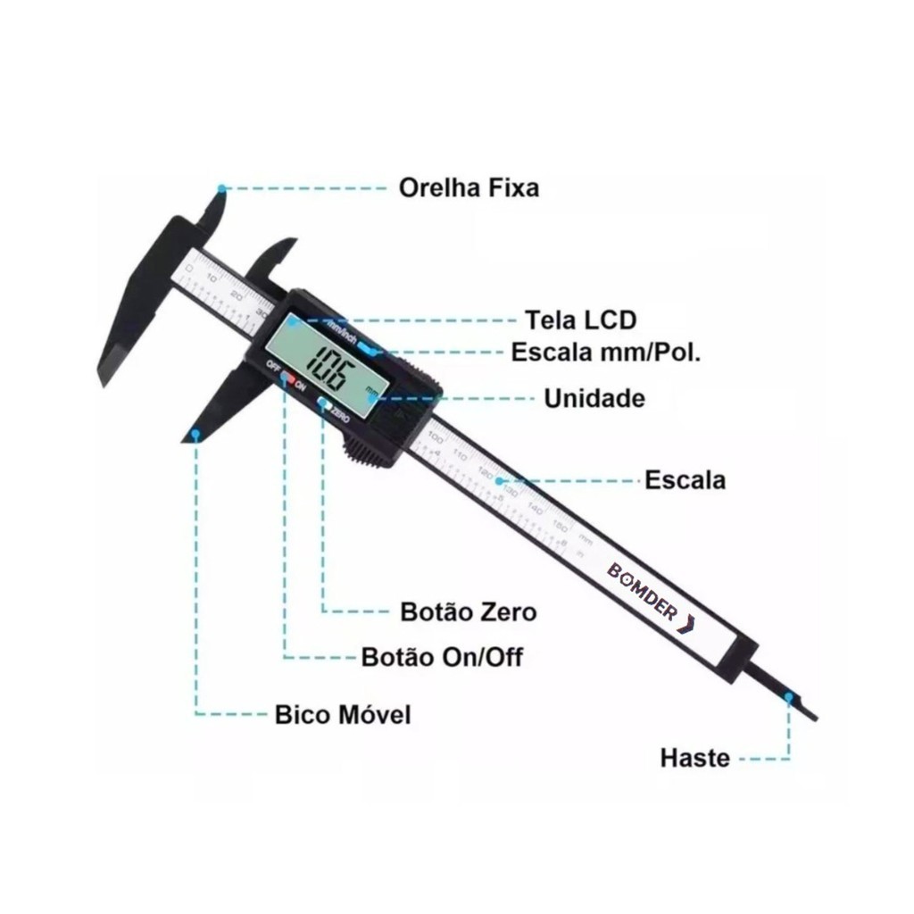 Paquímetro Digital com Display LCD - Medição Rápida e Precisa em Qualquer Ambiente - Visualização Clara e Instantânea das Medidas para Maior Eficiência
