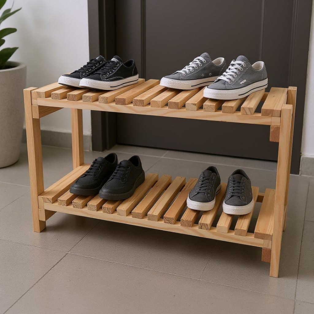 Sapateira Estante Organizadora De Pinus Multiuso Hall de Entrada Moderno Opções com 2 ou 3 Andares