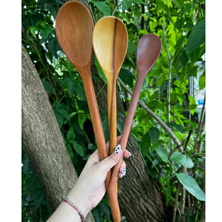 Kit 3 Colher de Pau Cabo Resistente Madeira Para Cozinhar Trio PMG Utensílio Cozinha