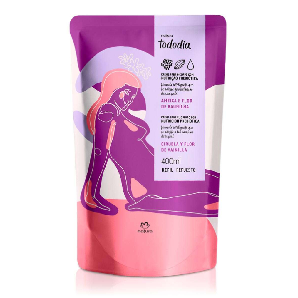 Creme Hidratante Corporal Natura Tododia - 400ml (Regular ou Refil): Algodão, Cereja e Avelã, Macadâmia, Ameixa e Baunilha, Flor de Lis, Capim Limão, Noz Pecã e Cacau, Amora Vermelha, Frutas Vermelhas, Tâmara e Canela, Framboesa