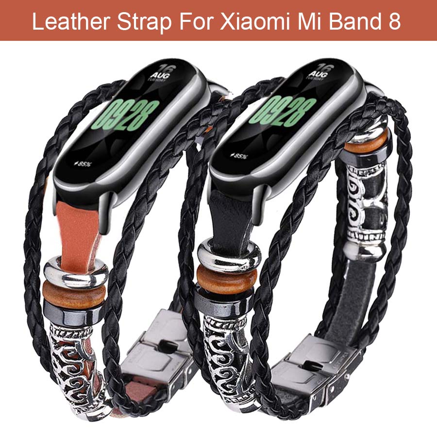 Pulseira De Couro Vintage Para Xiaomi Mi Band 9 8 Retro NFC Weave Rope Bands