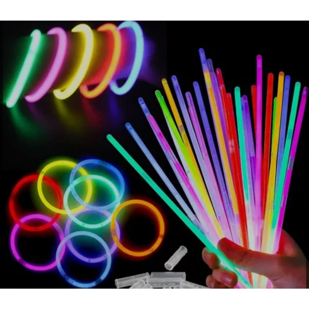 Pulseira Neon Brilha no Escuro Kit 100/200 Fluorescentes Alto Brilho Festa Balada