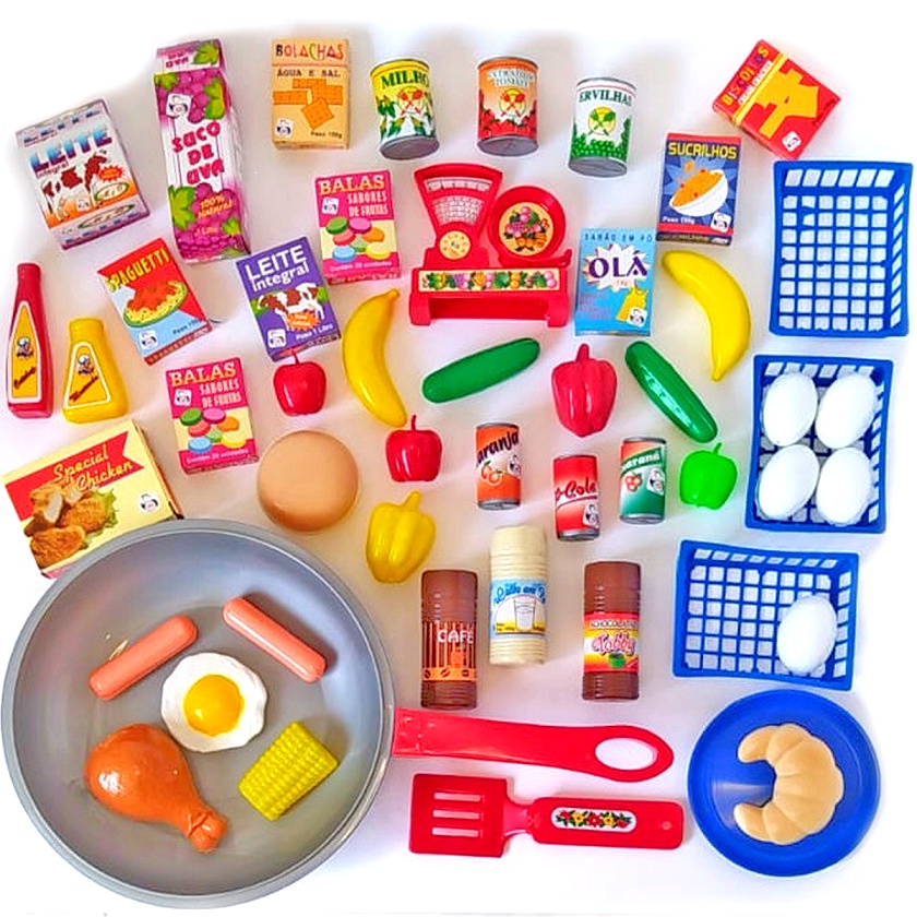 Kit Cozinha Infantil Frigideira Com Comidinhas De Brinquedo Supermercado Infantil