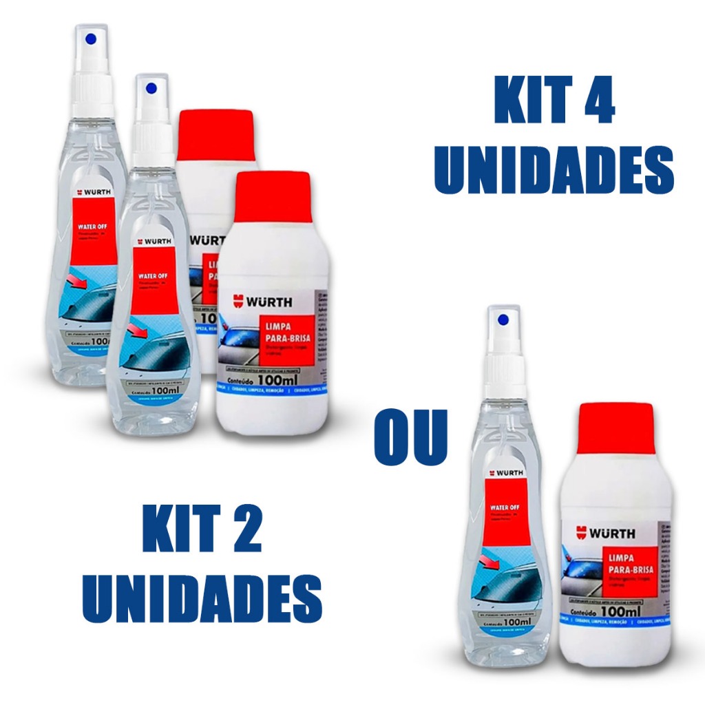 Kit Limpa Para-Brisa + Water Off Wurth 100ml Fluido Liquido Limpeza e Finalizador Cristalizador Parabrisa Carro Prontas