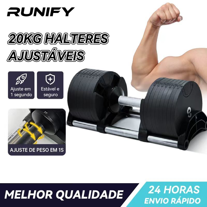 Dumbbell Halter Gallant Regulável Anilhas 20Kg Com Base Elite Pro