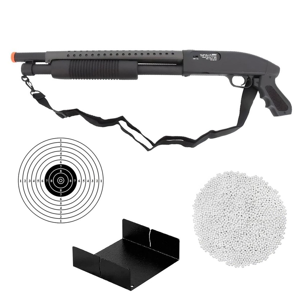 Kit Rifle Shotgun AirSoft M58B Spring 6mm Preta - Double Eagle + 2000 Esferas 0.12 + Alvo + Porta Alvo