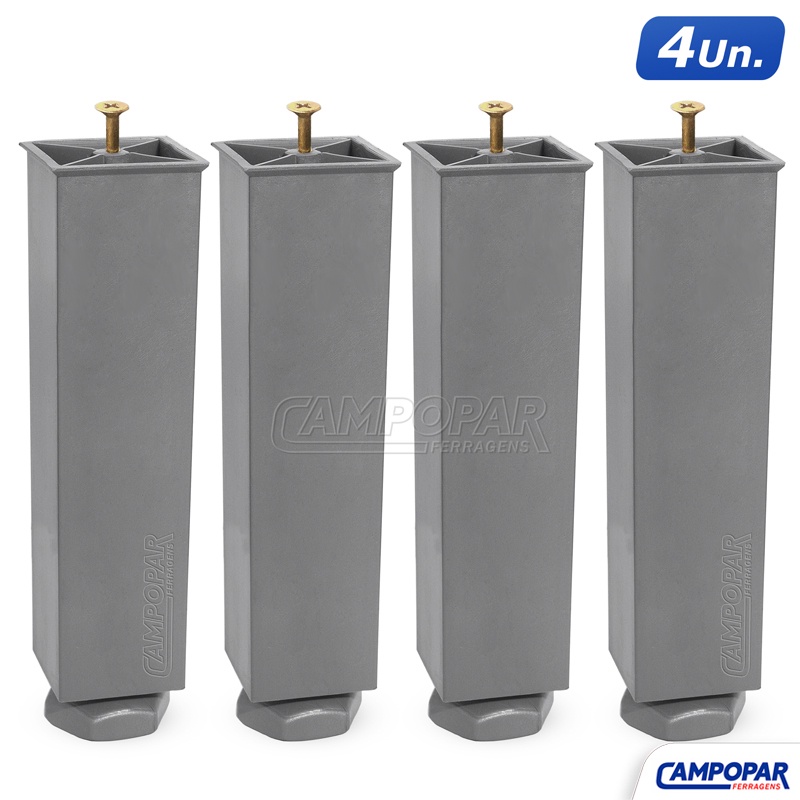 Kit 4 Pés Para Móveis Armário, Cozinha, Gabinete Regulagem De 17 A 19cm + Parafuso
