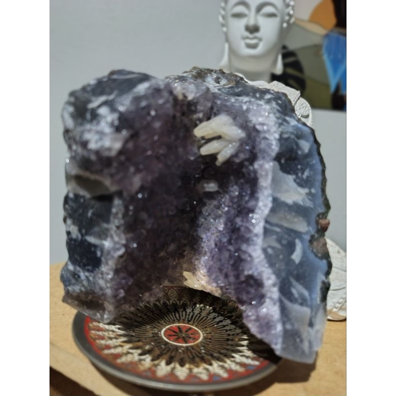Pedra Drusa Bruta Natural Ametista Com Calcita 10x9 CM 600 GR cod 0023