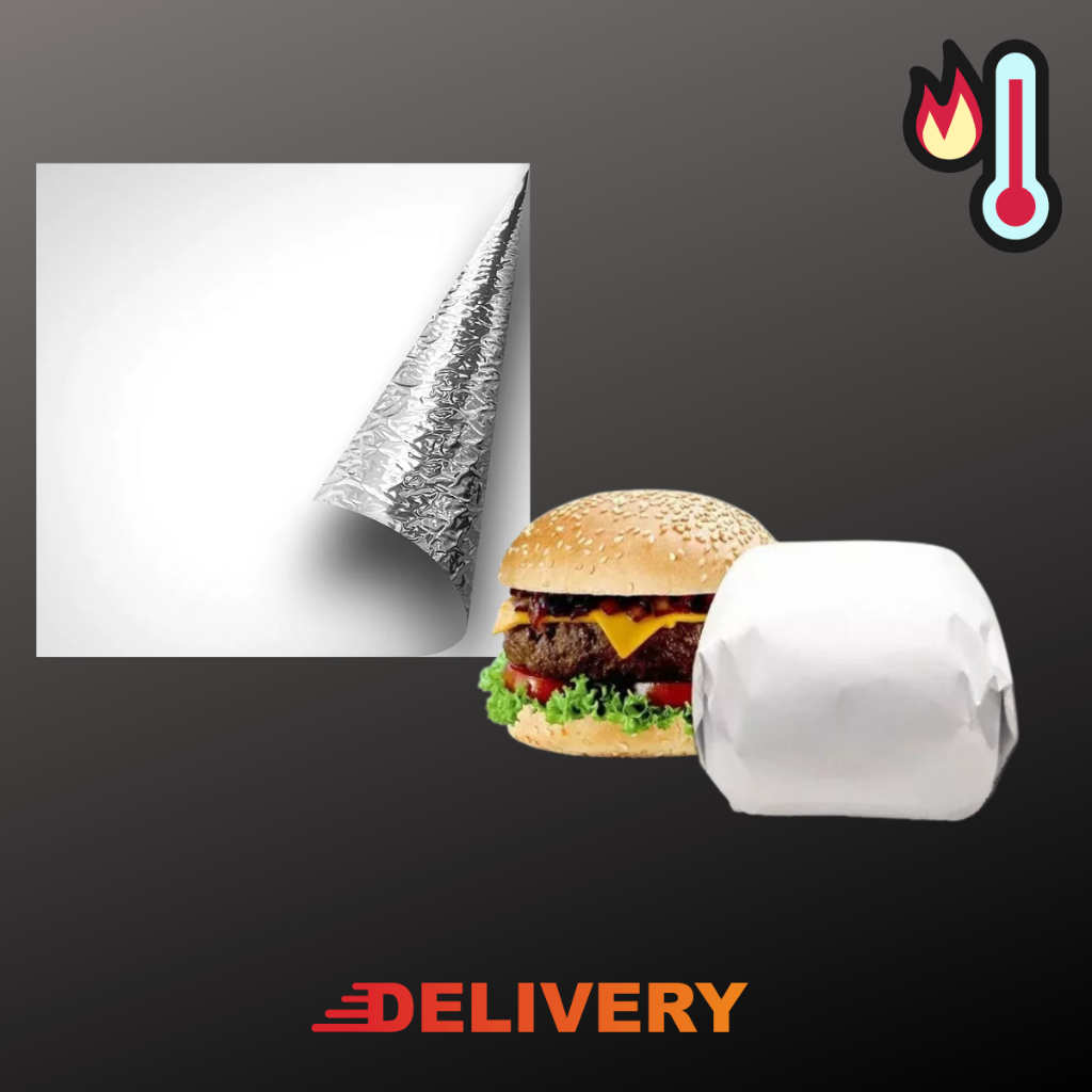 Papel Acoplado Térmico Laminado Alumínio Hamburguer Lanche Delivery 40x40 c/ 2kg