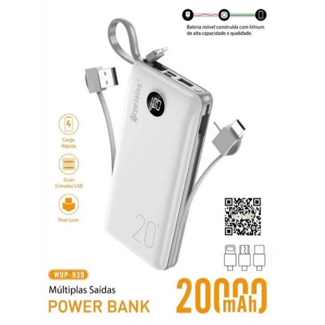 Carregador Portátil 20000mAh Peining WUP- 939 Múltiplas Saídas com Display Digital