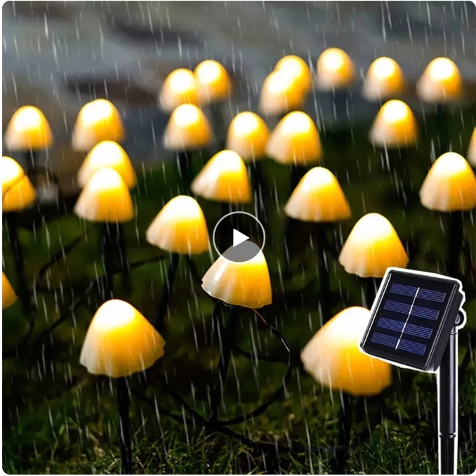 Kit Luz LED Solar Com 10 Cogumelo Lâmpada De Jardim Exterior À Prova D'água Guirlanda Pátio Gramado