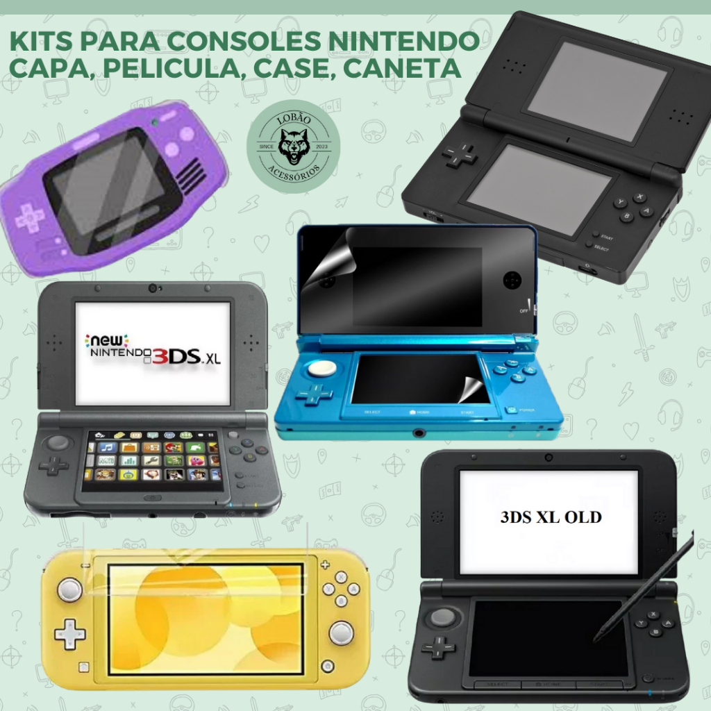 Kit Case, Pelicula de Tela, Caneta Acessórios para Consoles Nintendo DS Lite, 3DS, 3DS XL GBA e Switch – Escolha o Seu!