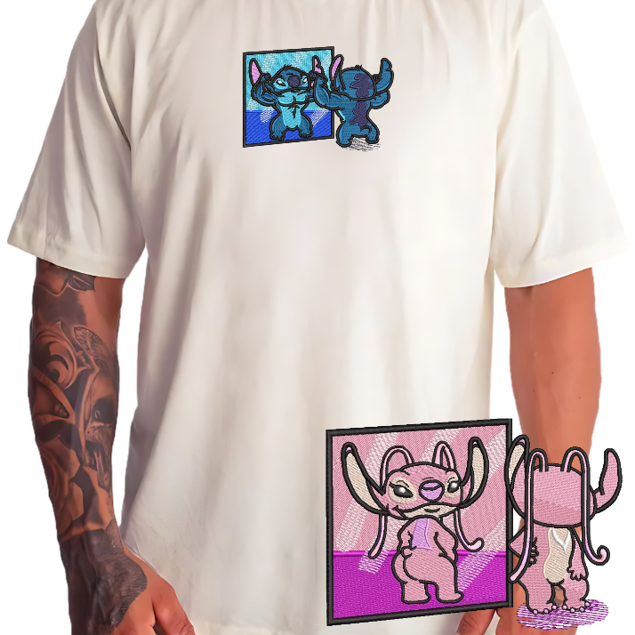 Camiseta Academia Oversized Streetwear 100% algodão Bordada Stich Angel Casal