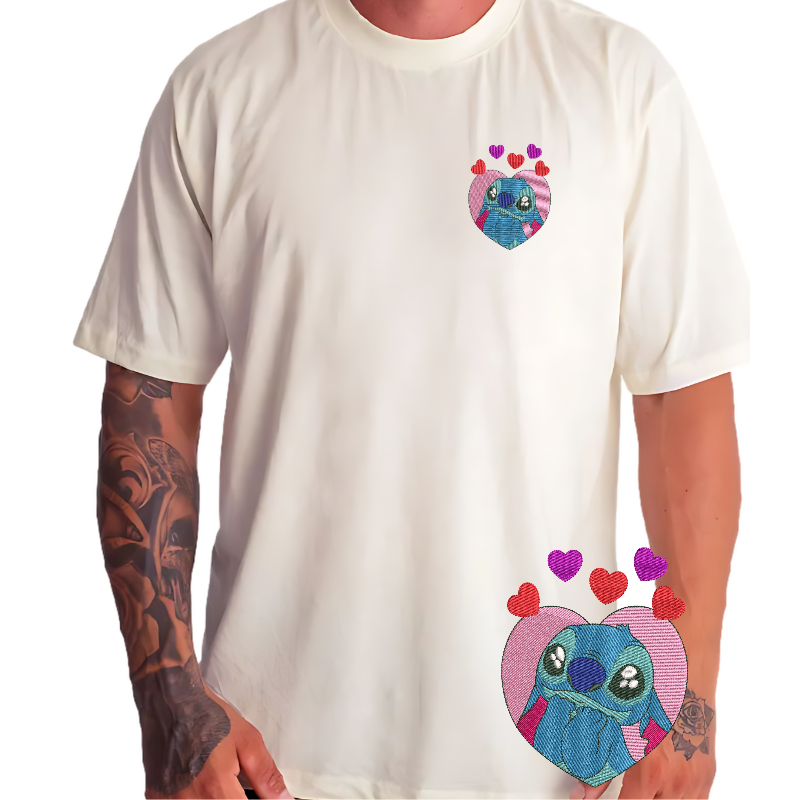 Camiseta Blusa Stitch Stiti Oversized Algodão Bordada