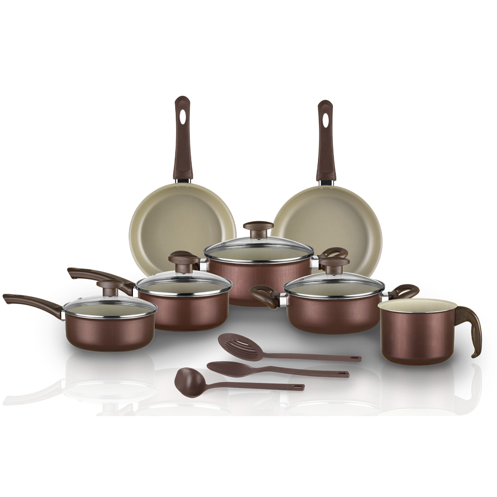 Jogo Conjunto de Panelas 9 Pçs Com Antiaderente Teflon E Tampas De Vidro e Espátulas