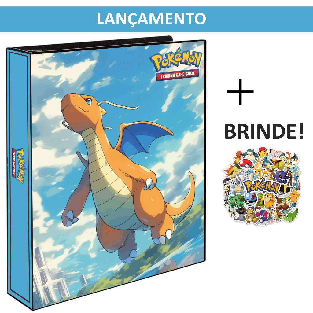 Fichário Álbum Grande Capa Dura Pokemon Pasta Cartas TCG Kanto Original DRAGONITE