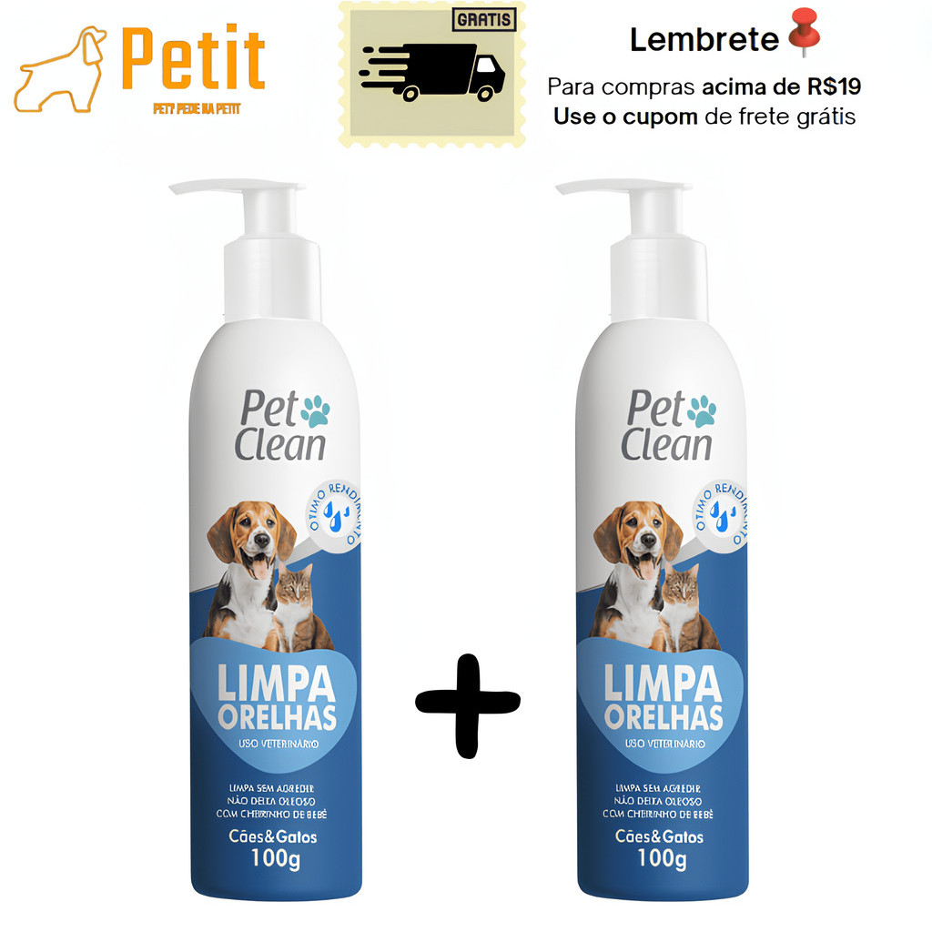 Kit 2 Limpador de Orelhas para Cachorro e Gatos Pet Clean - 2x 100 g