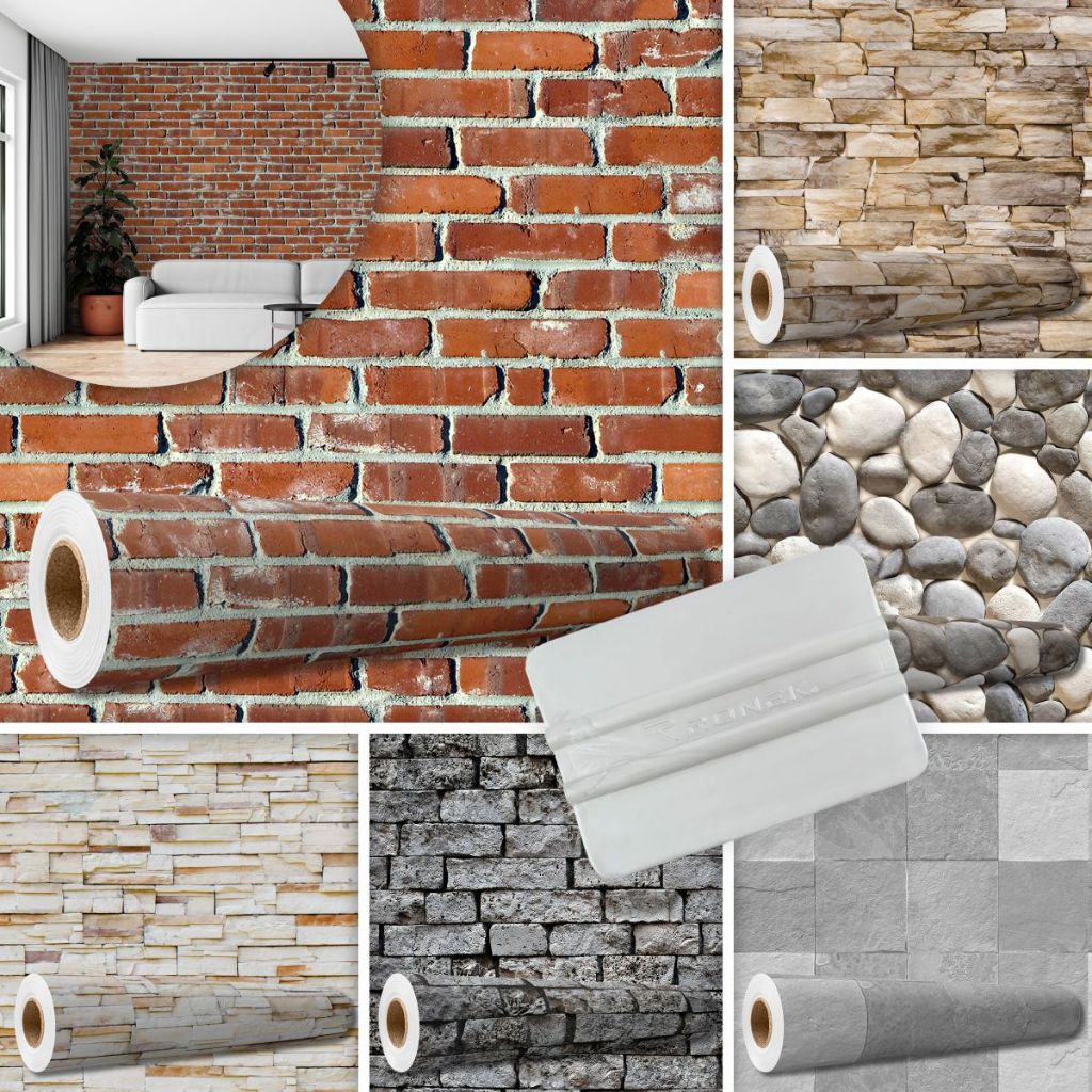 Espátula Profissional + Rolo 5 Metros Papel de Parede Auto Adesivo Canjiquinha Pedras Tijolo Sala Quarto Cozinha Banheiro Lavável