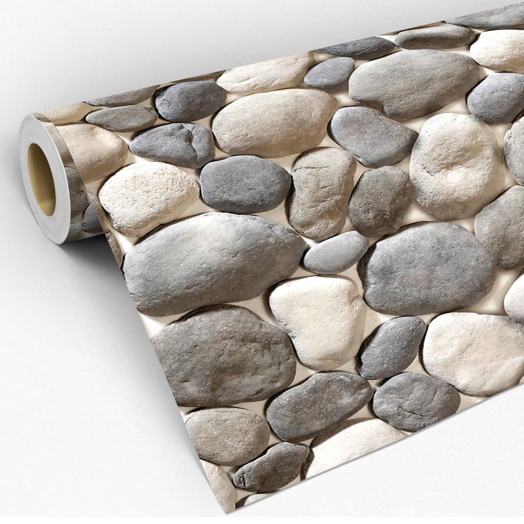 Papel de Parede Adesivo de Pedras Seixos Brancos Quarto Sala Cozinha Box Banheiro Lavável SSPE-037
