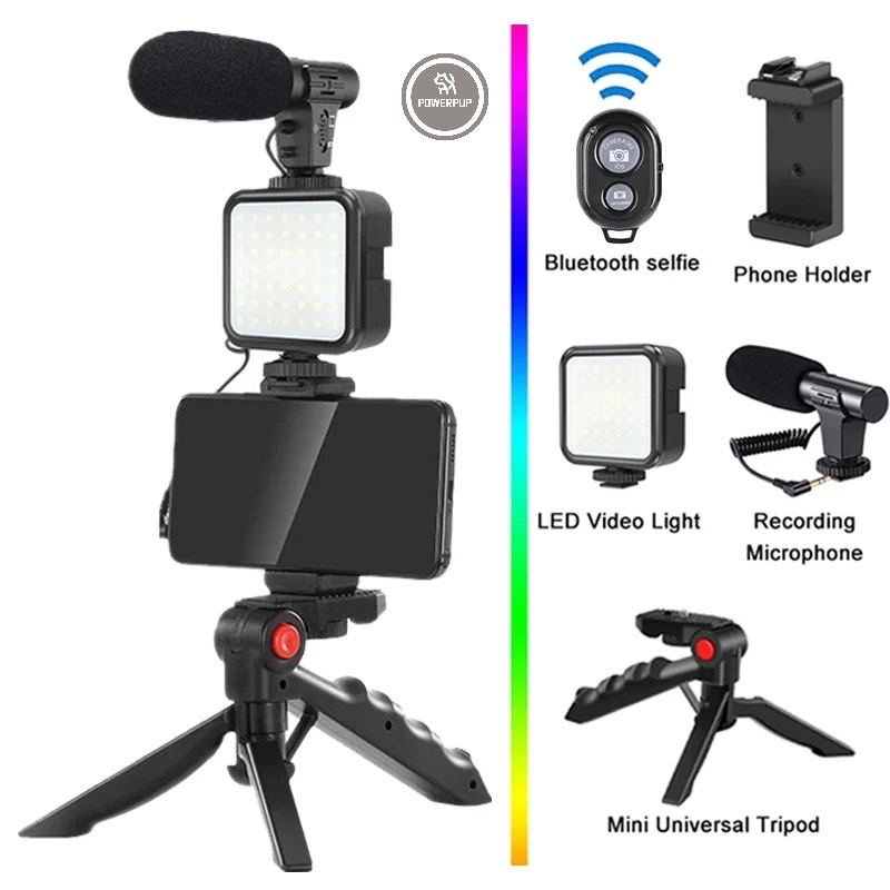 Kit Youtuber Tripe Vlog Live Suporte Celular Led com Microfone Fazer Vídeos