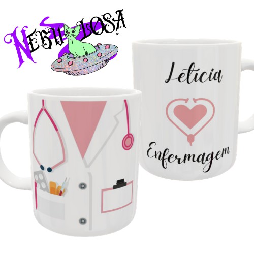 Caneca personalizada- Enfermagem com seu nome (temos a opção da cor azul também)