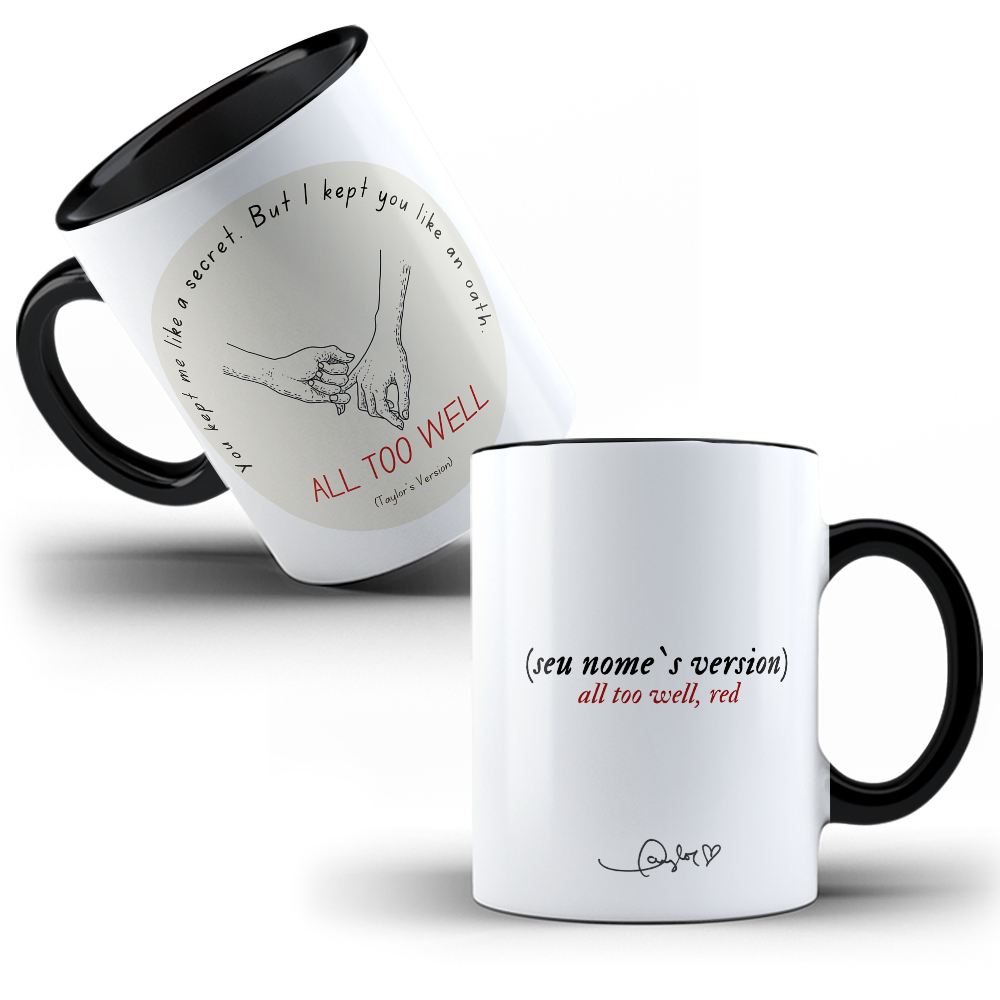 Caneca Porcelana Taylor Swift - Folklore Música ALL TOO WELL (personalizada com seu nome)