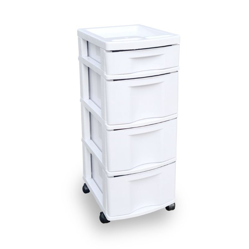 Gaveteiro Organizador Todo Branco 4 Gavetas Com Rodinhas