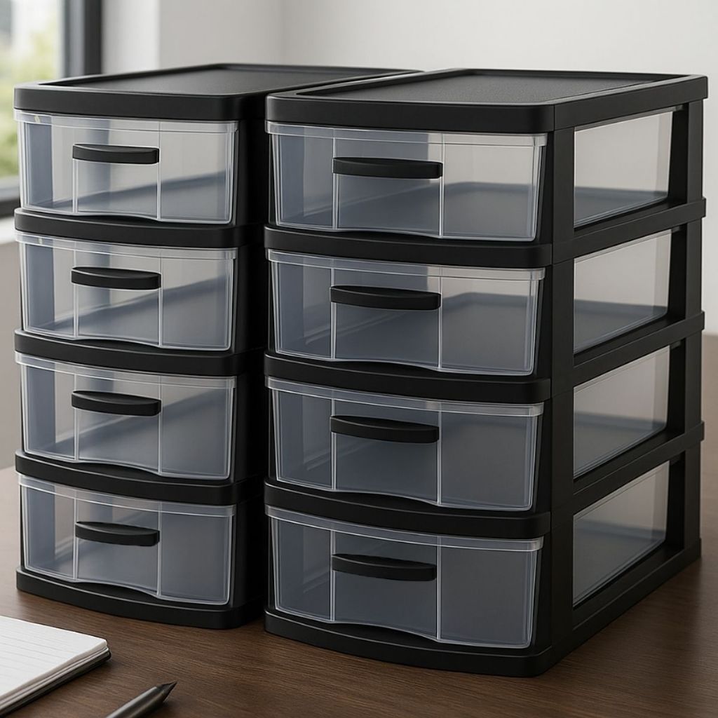 Kit 2 Gaveteiro Organizador com 4 Gavetas Grande em Plástico Jaguar Armário Cozinha Escritório