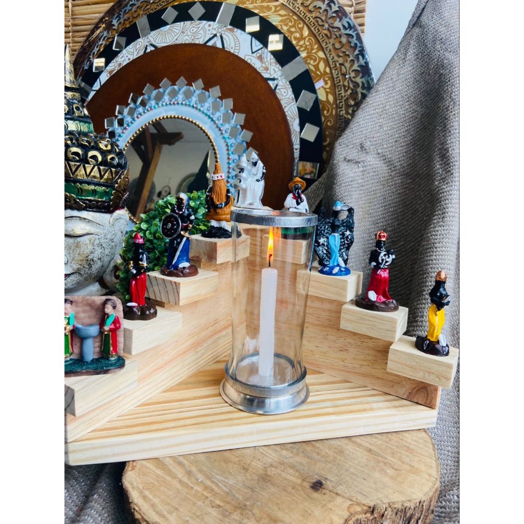 kit Altar Umbanda Madeira Escadas Conga Orixás Santos Candomblé Porta vela Axé