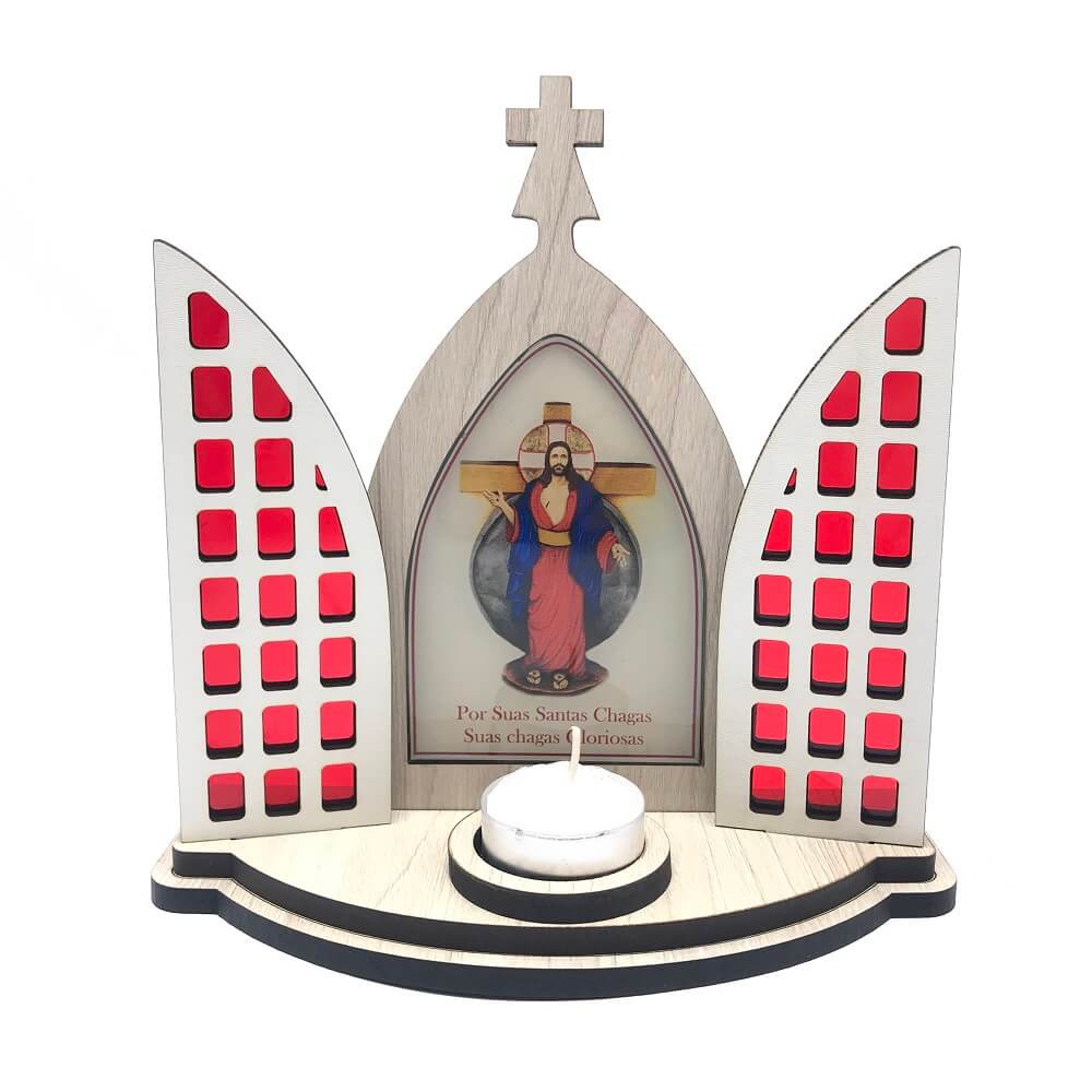 Capela Oratório Vitral das Santas Chagas de Jesus Com Porta Vela