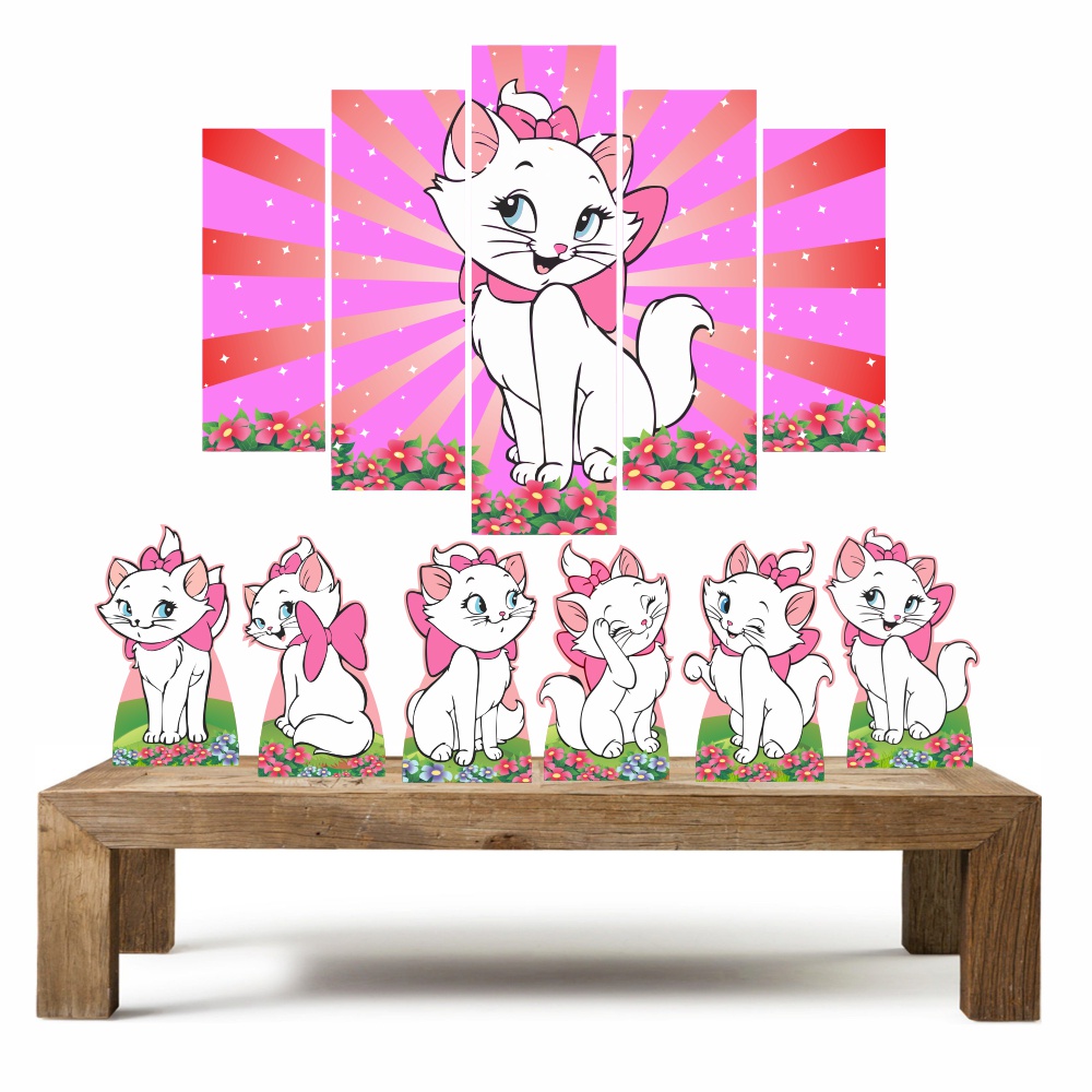 Gatinha Marie kit com 1 quadro mosaico + 6 totens de mesa em mdf decoração para festa Kit Enfeites