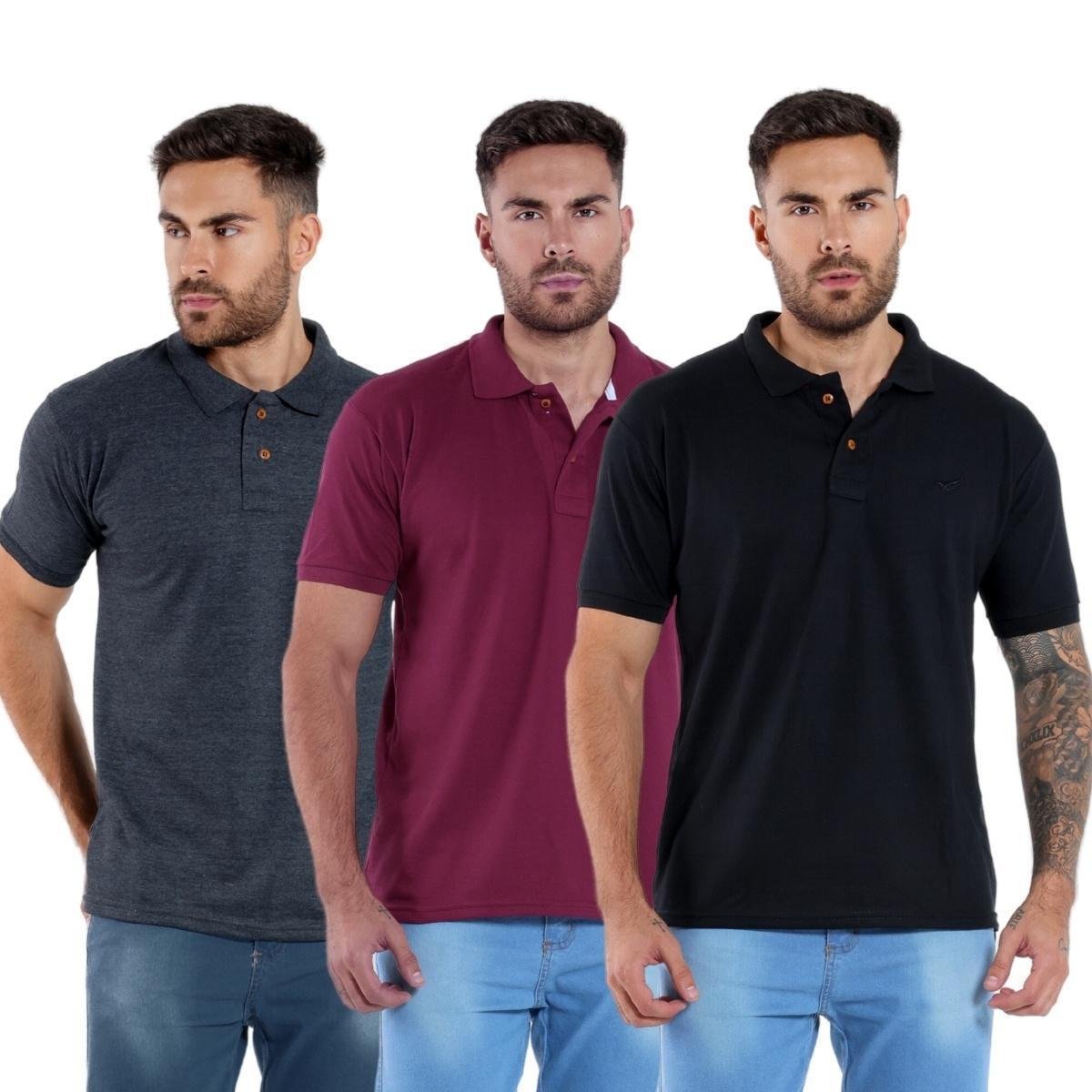 Kit Polo Masculina Tradicional Básica Envoy Manga Curta 3 Peças