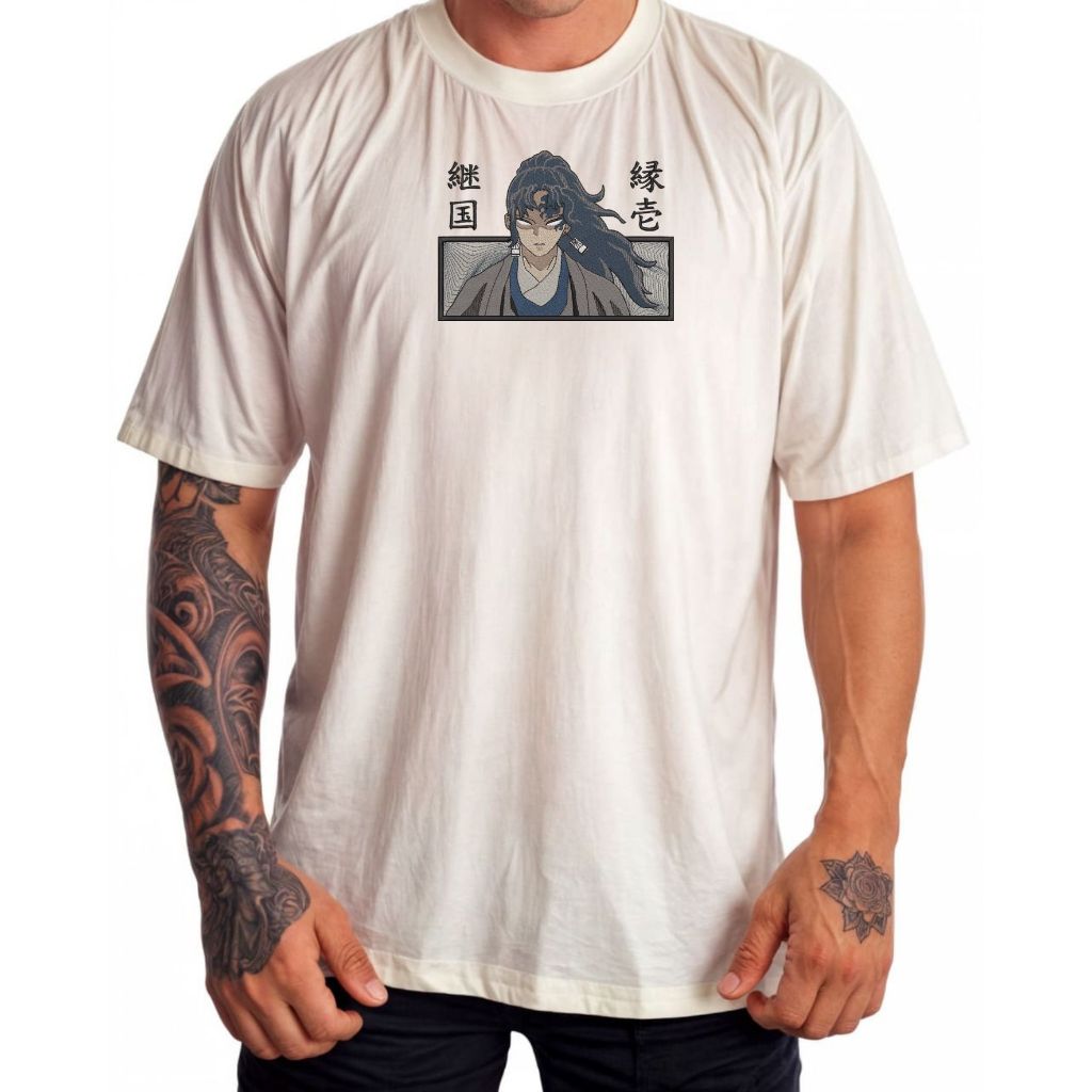 Camiseta Yoriichi Bordado anime demon slayer Oversized 100% algodão kokushibo