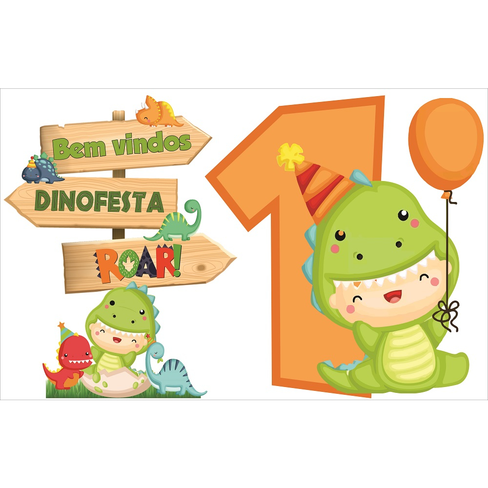 2 peças Display setas e numero dinossauro dino baby cute 65cm totem em MDF