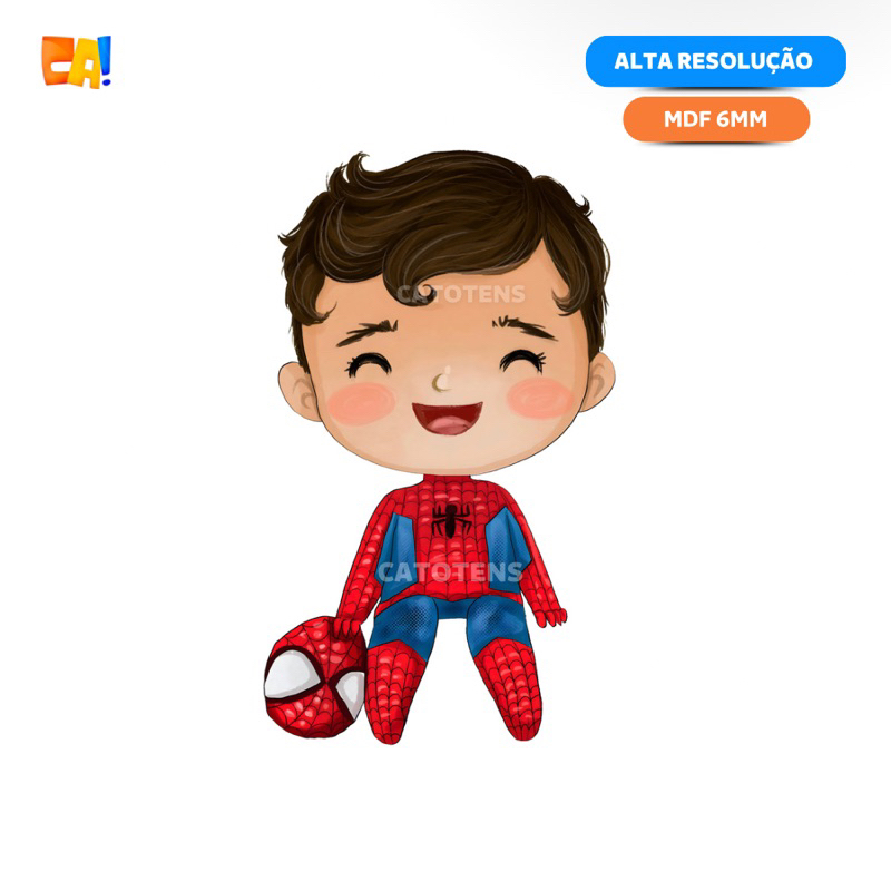 Display de chão MDF Homem Aranha cute baby cabelo preto aquarela catotens