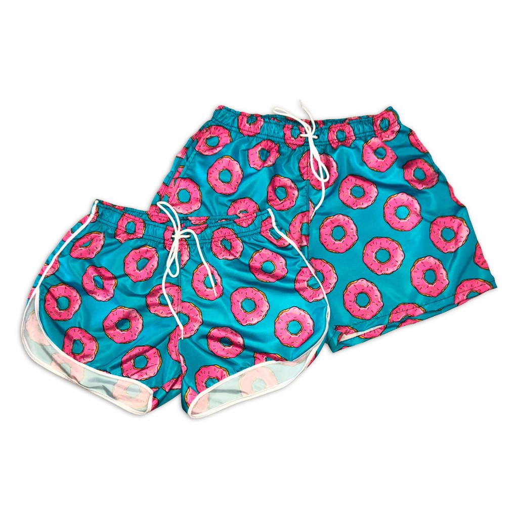 Kit Casal Feminino e Masculino Short Moda Praia Bermuda Cerveja Rosquinha