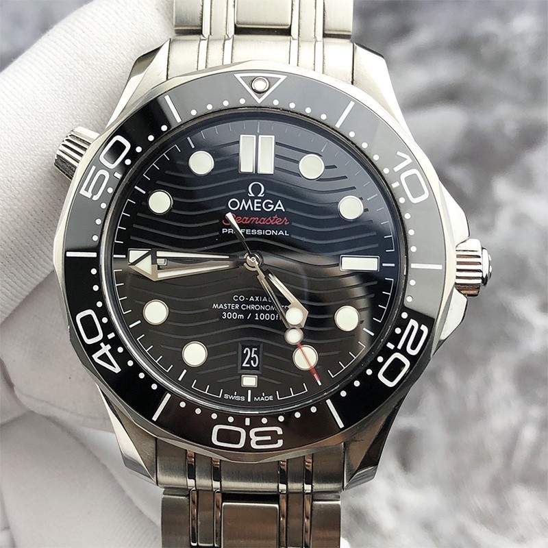 2024 O mega_c Novo Estilo Hipocampo 300 Mostrador Preto Banda De Aço Relógio Masculino 210.30.42.20.01.001