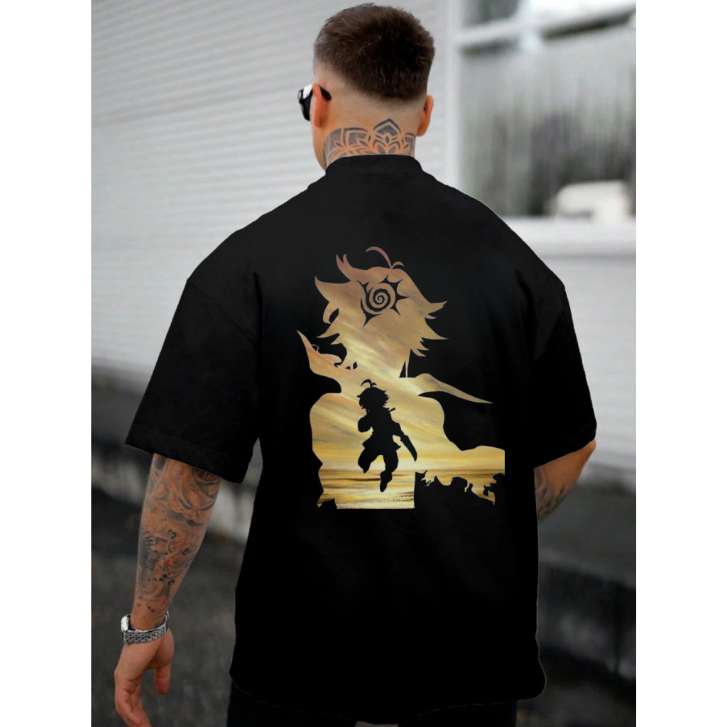 [Camiseta Premium em Algodão Puro]GXG Camiseta Oversized Masculina Nanatsu no Taizai Série Anime Escanor 7 Pecados Capit
