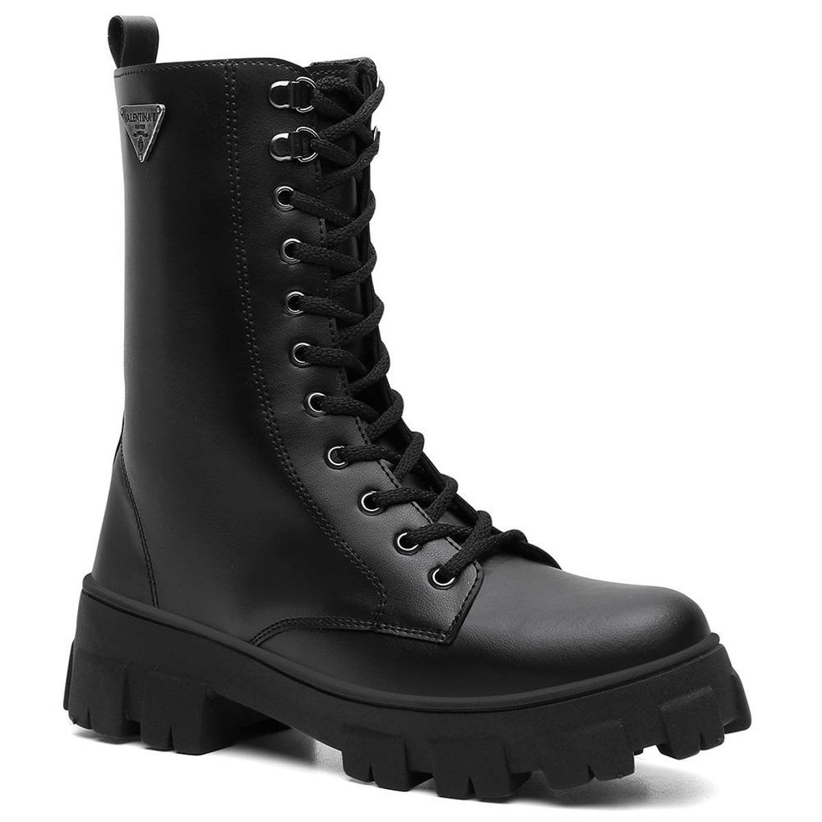 Bota Coturno Feminina Tratorada Cano Longo Cadarço Casual