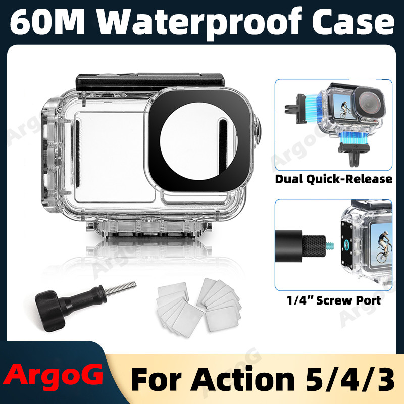 ArgoG Case à Prova d'Água 60M para DJI Action 5 Pro/4/3 Estojo Subaquático com Suporte de Liberação Rápida