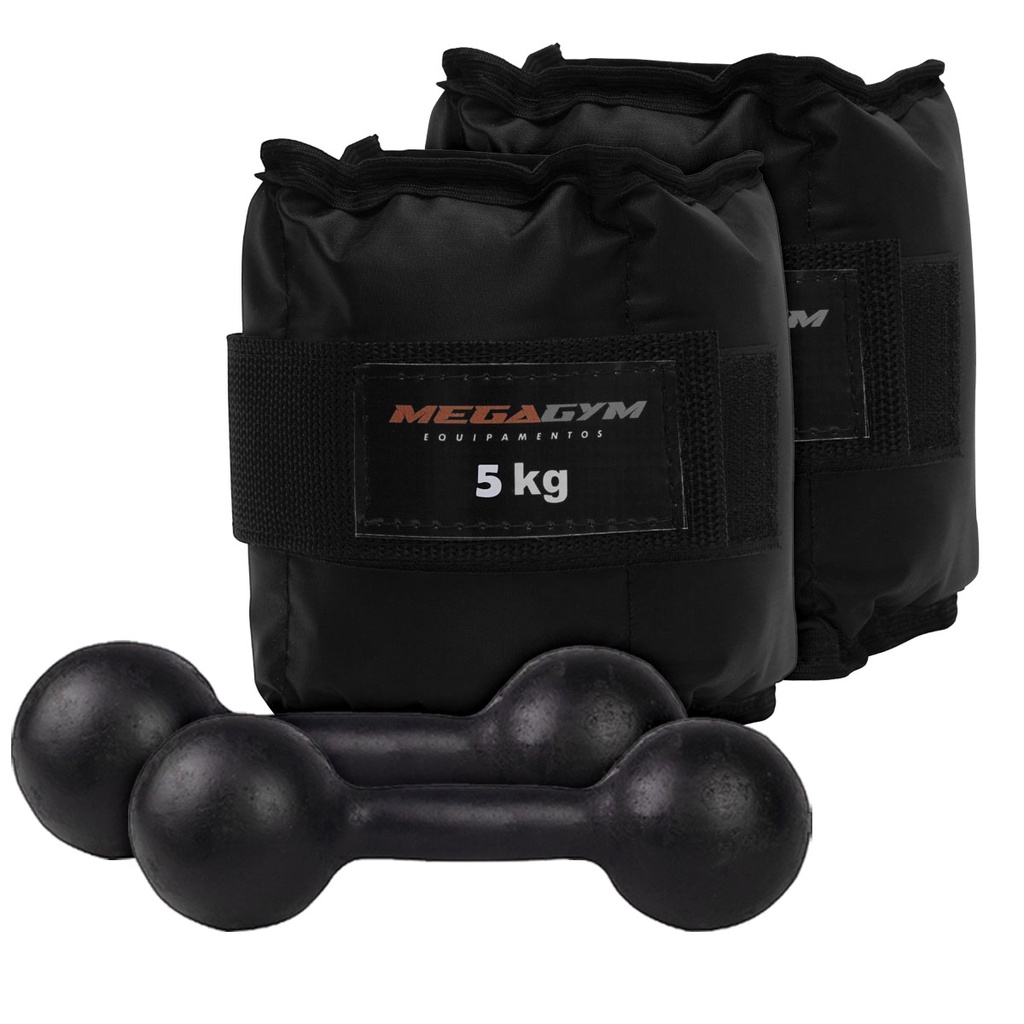 Kit Para Musculação Em Casa Com Par De Caneleira 5Kg + Par De Halter Bola 3Kg