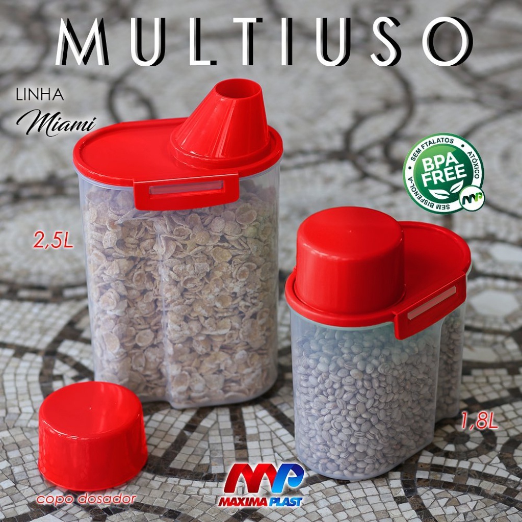 Pote Porta Farinha 2,5L Farinheira c/ Bico Dosador de Plástico Dispenser Para Cereais 2500ml Porta Sabão em Pó