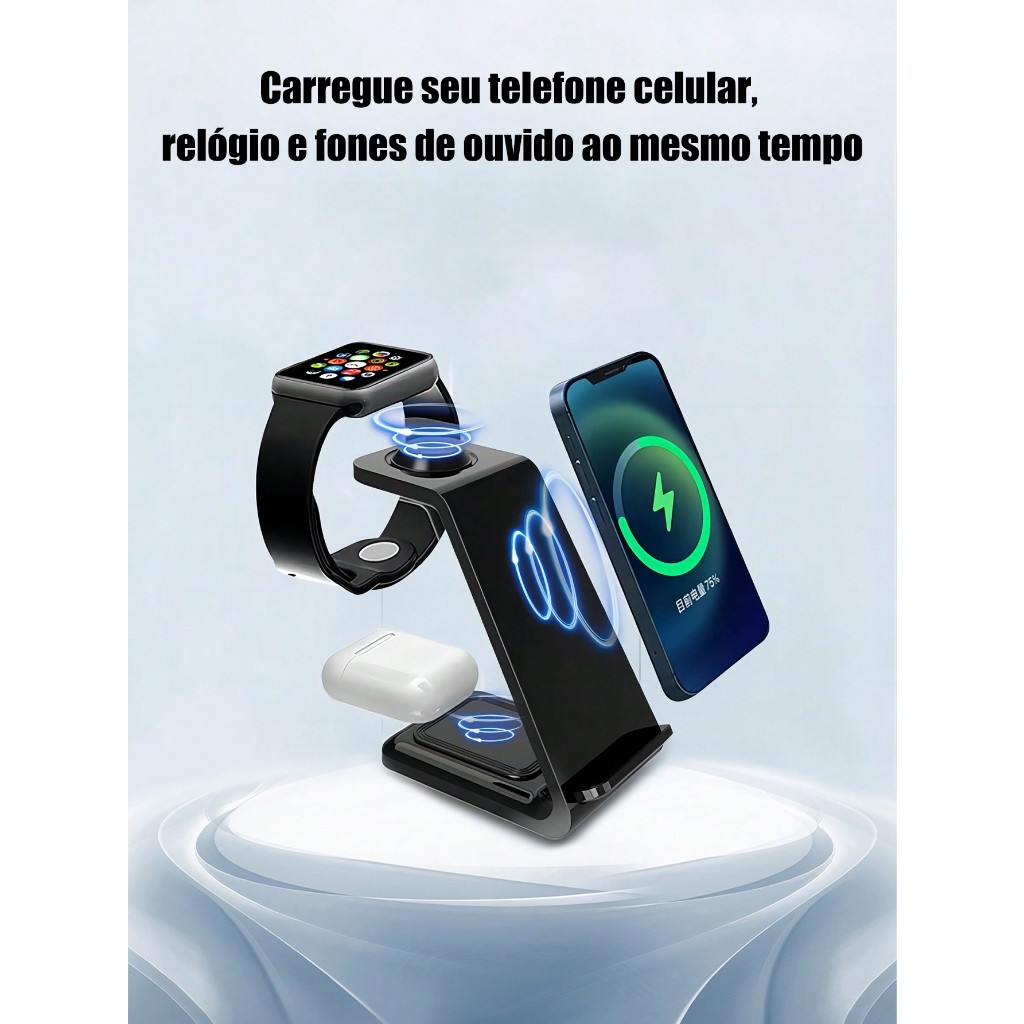 INOVA Suporte de carregador sem fio 3 em 1 para fones de ouvido de relógio de carregamento de celular sem fio