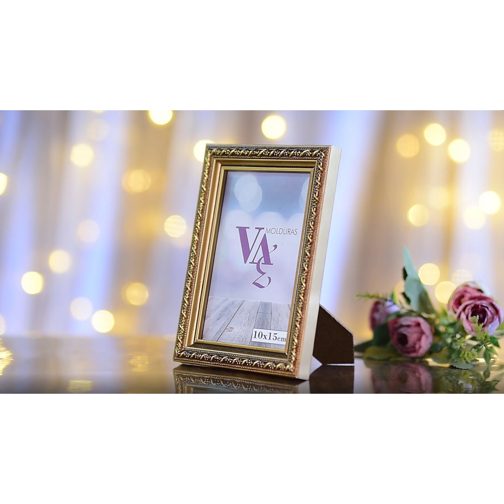 Kit 5 Moldura Dourada Porta Retrato 10x15 Dourado Luxo com Vidro