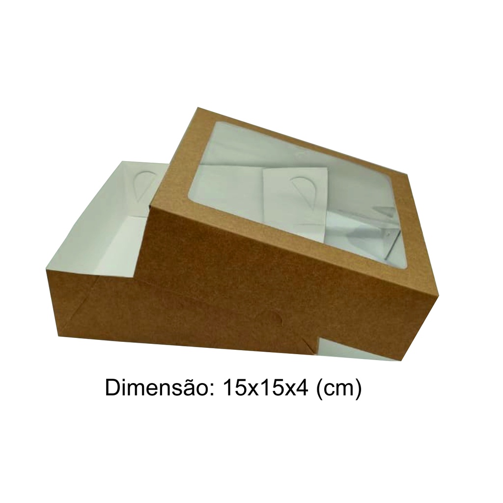 Caixa De Presente Visor Kraft - 10 unidades - 15x15x4 (cm)
